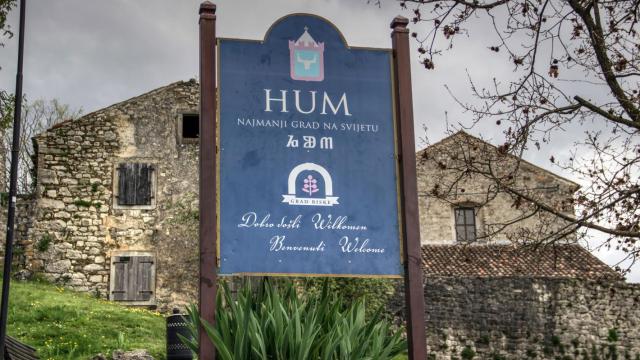 Хум, разположен на около 4 часа с кола от Загреб, е споменат за първи път в писмени източници още през 12 век, когато е бил важна крепост в рамките на феодалната система. Градът е ограден от каменни стени, а входът му е охраняван от масивни градски порти от 1562 г., украсени с релефи, които свидетелстват за богатото минало на това място, информира Kurir.