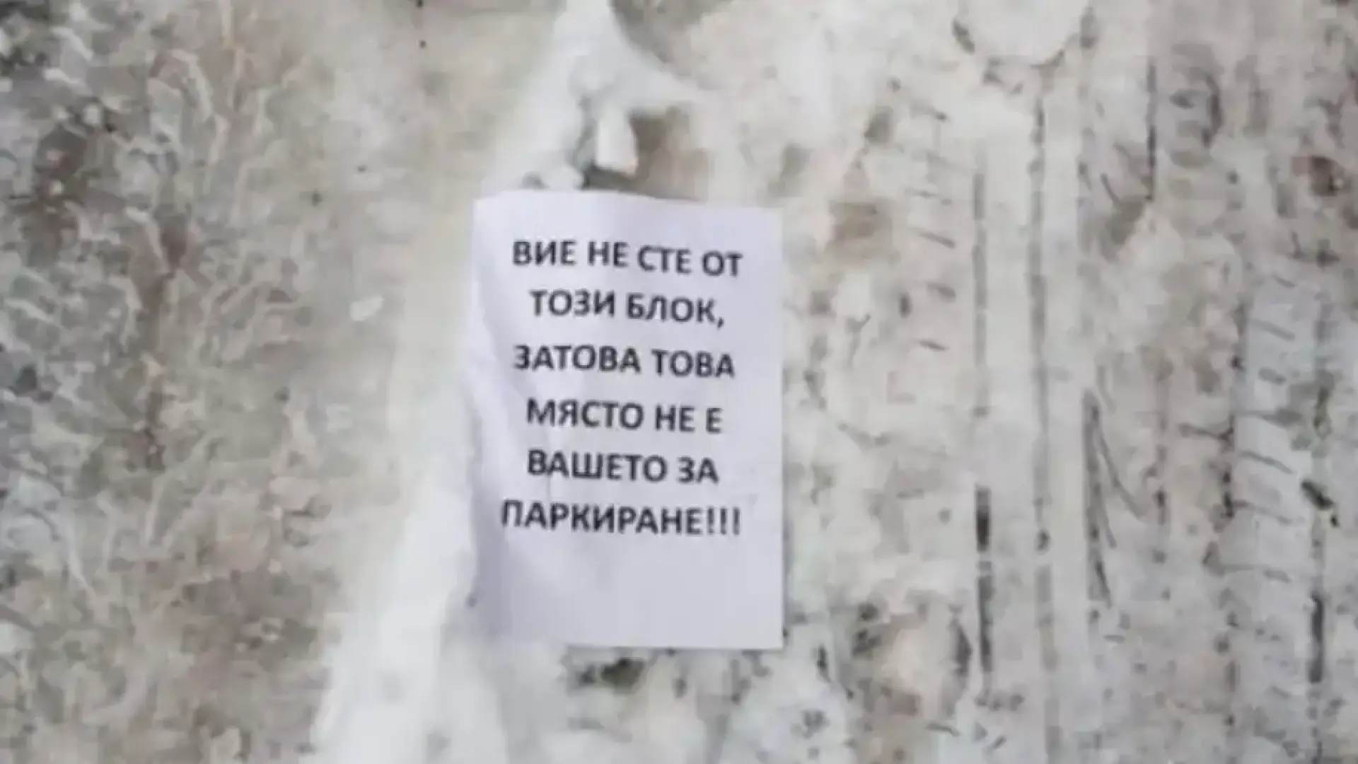 Поредният конфликт около паркирането в Велико Търново предизвика вълна от коментари в социалните мрежи. Мъж публикува снимка на бележка, оставена върху автомобил, на която е изписано: „Вие не сте от този блок, затова това място не е вашето за паркиране!!!“. Към кадъра авторът иронично добавя: „да си знаете“.