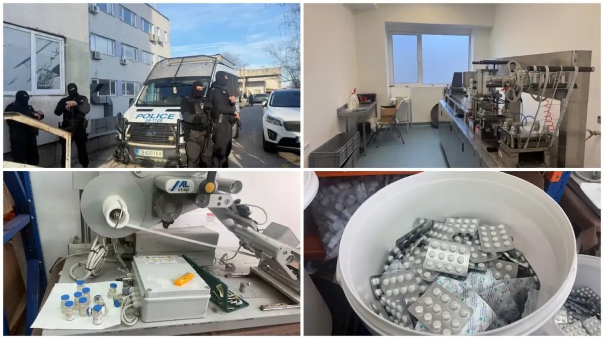 Нелегална фабрика за фалшиви лекарства и анаболни стероиди е разкрита в София. При мащабна международна операция срещу незаконната търговия с медикаменти са иззети над 1 милион таблетки, суровини и производствено оборудване.