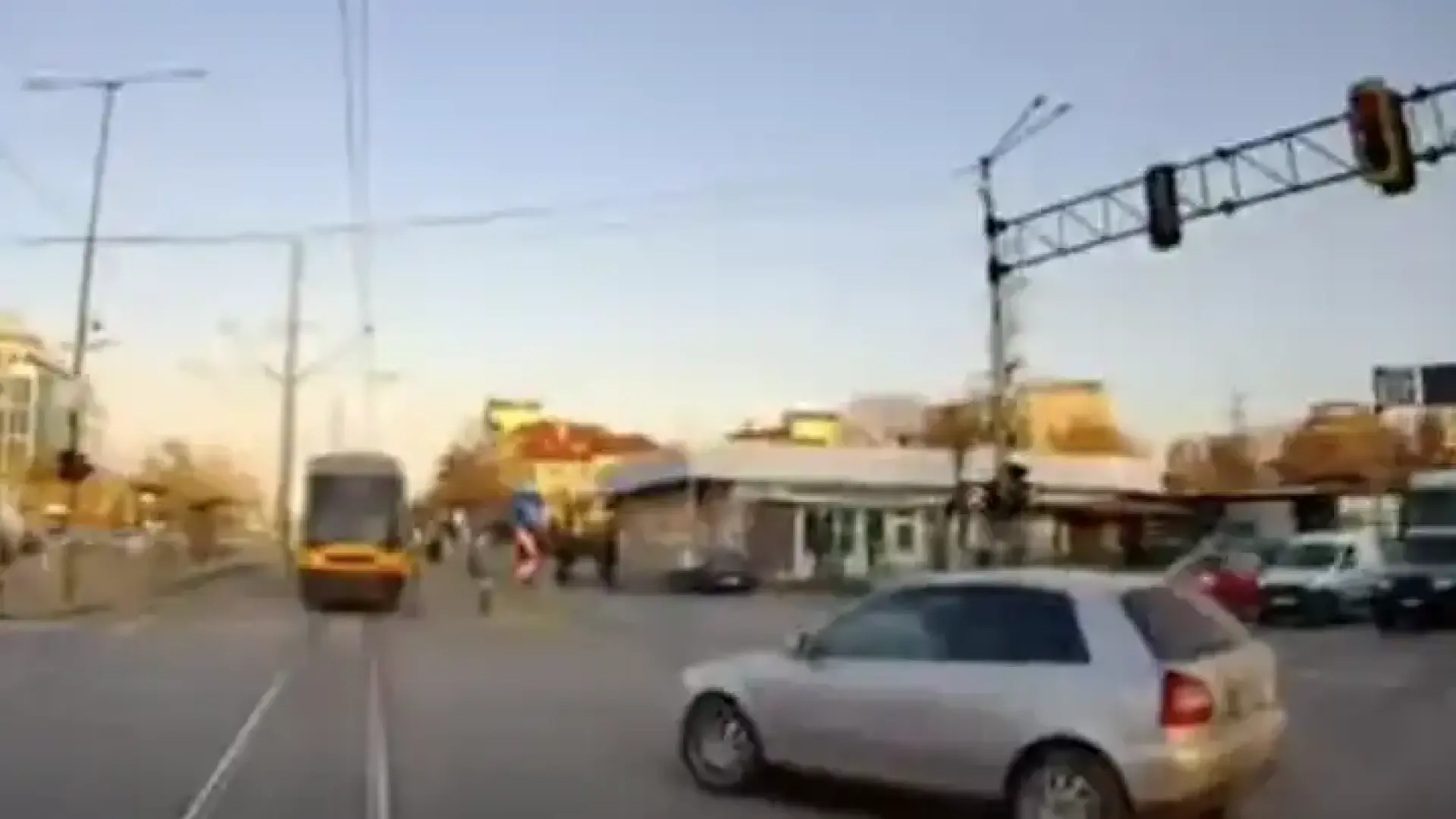 Лека кола е с потрошена предница заради удара, зад нея има друга машина. Автомобилите са отбили, като трафикът не е затруднен.